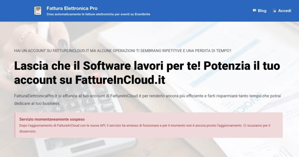 The public website and blog were used to explain the workflow, publish tutorials, and collect early user feedback. The blog documented the process step by step: how to configure Eventbrite, how to export the CSV file, and how to use Fattura Elettronica Pro to generate invoices.